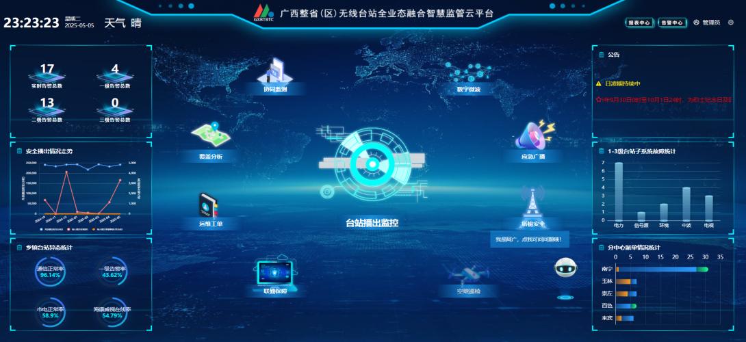 广西广电台站运维管理相关系统升级改造项目,核心目标是构建多业务系统融合平台,实现远程监控、工单管理、覆盖侦测、应急终端运维等多个业务系统的统一整合与高效协同。项目将打造统一风格的门户界面,接入现有统一开放授权认证平台,支持用户自定义布局与跨平台兼容,同时集成大语言模型与 AI 算法,推出智能咨询、语音交互等创新功能,搭配数字人语音问答播报服务,全面提升运维管理的智能化水平。